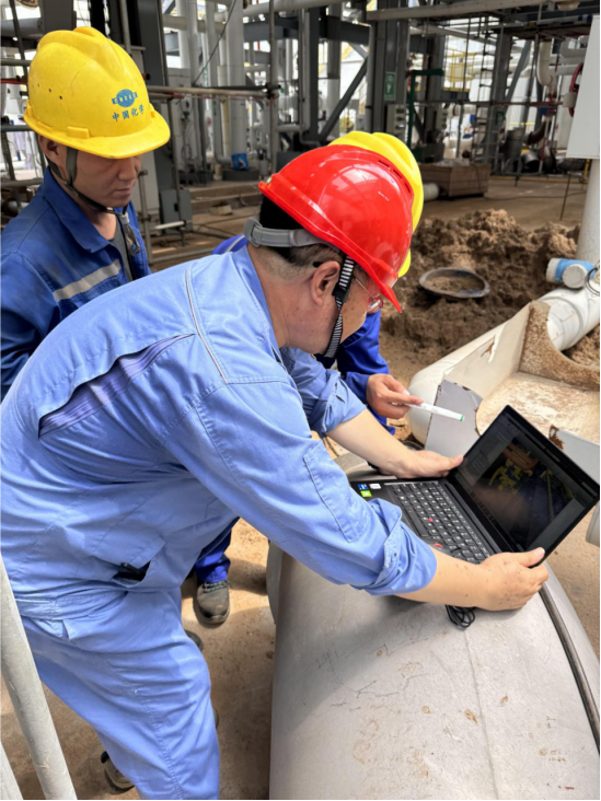 暴雨如注的检验现场,视线被雨幕阻隔,管廊湿滑难行。技术员提前清理积水、铺设防滑垫,为特检人员精准指引管道走向;特检员护着仪器冒雨操作,双方协同作战。经过两天两夜连续攻坚,所有隐患管道完成检验,团队同步拟定修复方案,成功化解险情,彰显了“召之即来、来之能战、战之必胜”的铁军本色。